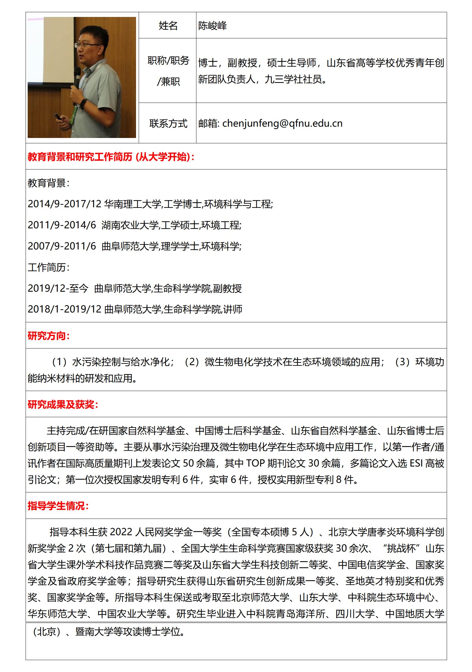 陈峻峰简介