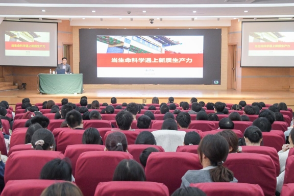 张洪海从“生命科学进展”“什么是新质生产力”“新质生产力开辟生命科学新赛道”三个方面,全面梳理了生命科学的发展历程,介绍了本世纪生命科学的重大科学进展,阐释了习近平生态文明思想的科学内涵;系统讲述了发展新质生产力的重大意义、新质生产力的本质特点,科学回答了如何培育发展新质生产力;以专业的视角介绍了生命科学与新质生产力紧密结合下的新兴技术。张洪海勉励同学们要将个人志向与时代发展相融合,将自身价值与时代使命相结合,重学习、勤思考、多动手;要自强不息、志存高远,脚踏实地做学问,研究真问题,真研究问题;要拓宽视野、团结合作,合力攻坚克难;要化潜能为优势,培养创新发展的思维能力,为中国式现代化建设贡献青春和力量。