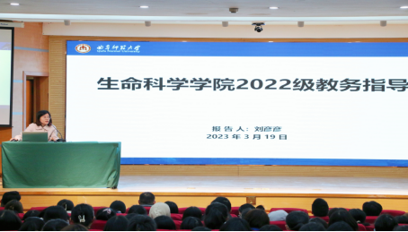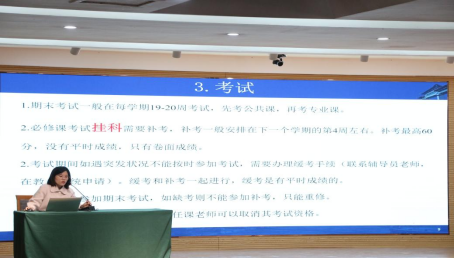 教务处刘彦彦老师在孔子会堂为2022级举行教务指导大会。