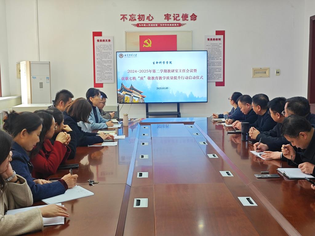 在学校建校七十周年来临之际,为深入贯彻落实《教育部关于加快建设高水平本科教育全面提高人才培养能力的意见》等文件精神,进一步提升学院整体教学质量,学院于3月5日在生物楼208会议室召开了2024-2025年第二学期教研室主任会议暨“弦歌七秩‘质’敬教育”教学质量提升行动启动仪式。院长王仁君、副院长燕艳、各教研室主任及部分教师代表参加会议。会议由燕艳主持。