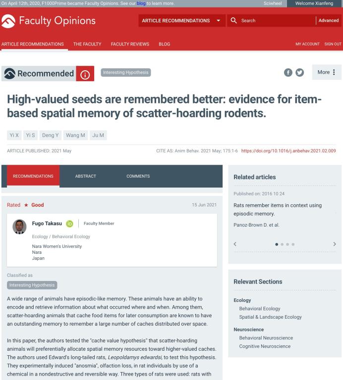 易现峰教授自2019年被引进我校以来,在动植物关系和动物行为生态学领域潜心研究,先后获得山东省高等学校“青创人才引育计划”和国家自然科学基金面上项目资助,已在Journal of Ecology,Animal Behaviour,Frontiers in Plant Science,Microbial Ecology等国际期刊发表论文十余篇。近期发表在Animal Behaviour上的论文(2021, 175: 1-6),被国际生物医学领域重要的学术论文评估机构“Faculty Opinions”列为推荐论文。Faculty Opinions(原F1000Prime)由全球近8000名生物学和医学领域的顶尖科学家从每年所发表的生物医学论文中评选出不足千分之二重要文章,赋予“F1000”论文称号。