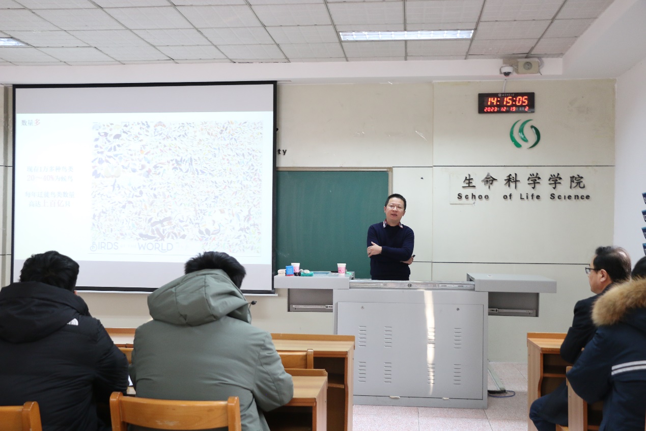 师生做了题为“鸟类长距离迁徙之谜”和“鸟类性选择研究”的学术报告。报告会由副院长王庆贵教授主持,院长王仁君教授及生科院百余名师生参加了此次活动