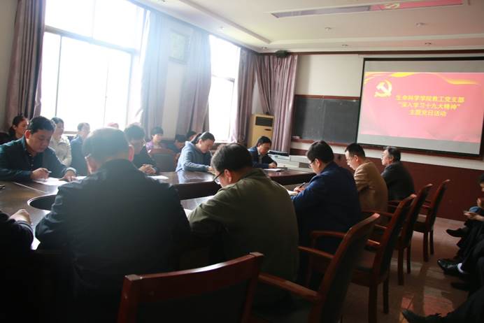 教工党支部还进行了学习培训系列之一:“学习强国”和“灯塔在线”APP的学习和使用,由教工党支部委员辛玉峰通过PPT向全体党员介绍了这两个软件的使用方法和目前的学习要求,还特别邀请了沙未来同志就自己的学习经验进行了交流。最后,全体教工党员集体观看了视频“十九大党章公开课”之“第一讲:中国共产党章程的历史沿革”,这也是生科院教工党支部年度工作计划中视频教育学习系列的一部分。