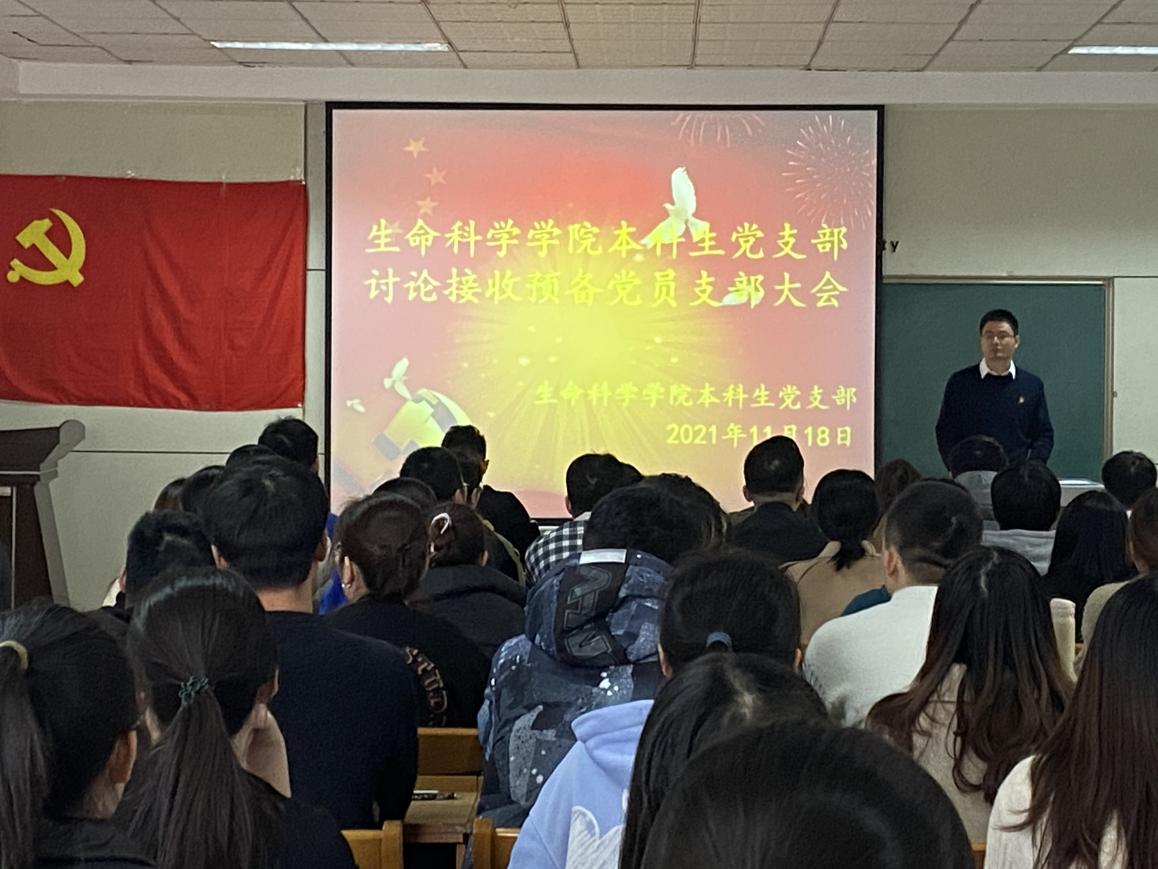 本科生党支部接收预备党员支部大会于生物楼232室召开,会议审议并接收王婧、蔡浩天等102名同志为中共预备党员的相关事宜。党支部书记杨申振主持此次会议。