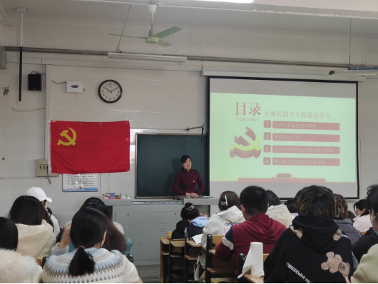 首先,张明洁同志对入党积极分子表示祝贺,并激励他们进一步向党组织靠拢,指明下一阶段各入党积极分子的目标是成为一名党员发展对象、进而成为一名预备党员、一名正式党员。随后,张明洁同志从矛盾的普遍性和特殊性、矛盾的对立统一、矛盾是事物变化发展的根本原因、善于集中力量解决主要矛盾这四方面,结合学生学习和生活实际情况,用案例的方式讲述了怎样按照马克思主义世界观和方法论办事。她讲到,学好马克思主义的世界观和方法论,既是改造主观世界、增强党性修养,政治上坚定的必要途径,也能够帮助我们处理好很多实际问题,收获自我成长的人生智慧。
