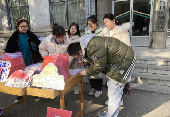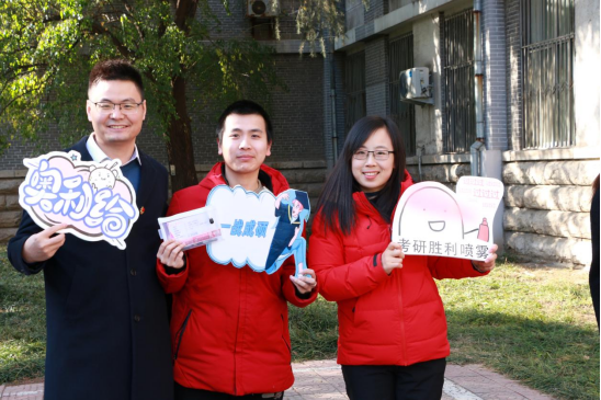 本科生党支部于生物楼前组织开展“我为群众办实事”志愿服务主题党日活动,为2018级考研学生发放考试加油包。党支部书记杨申振、宣传委员刘文静与部分党员同志参加了本次活动。