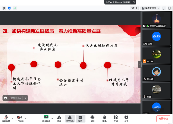 10月28日,学院党委举办理论学习中心组(扩大)暨全体教工政治理论学习活动,学院党委书记李志广主持。本次集中学习通过线上形式以“书记讲党课”的方式开展。党委理论学习中心组全体成员、全体教职工参加。