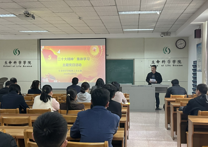 为全面贯彻习近平新时代中国特色社会主义思想,深入学习党的二十大精神,2023年3月9日,生科院教工党支部在二楼会议室开展了主题党日活动,专题学习党的二十大报告。