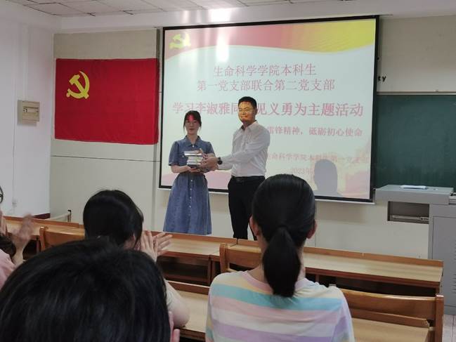 本科生第一党支部联合第二党支部于生物楼232室举办学习李淑雅同学见义勇为主题党日活动。