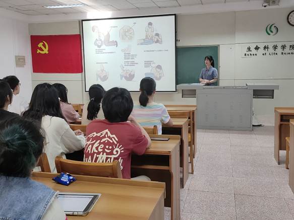 李淑雅同学上台发表感想时讲到:“当时情况紧急,大家都在喊有没有人可以帮忙,正好我在课上学过心肺复苏的方法,于是我就冲上去了。我也觉得很荣幸,可以用自己的专业理论知识帮到身边的人。”同时,她也向与会党员普及了心肺复苏的知识,倡导党员参与到助人为乐、济困扶危的行动中来。大家用热烈的掌声对李淑雅同学的英勇行为表示了褒扬和赞美。