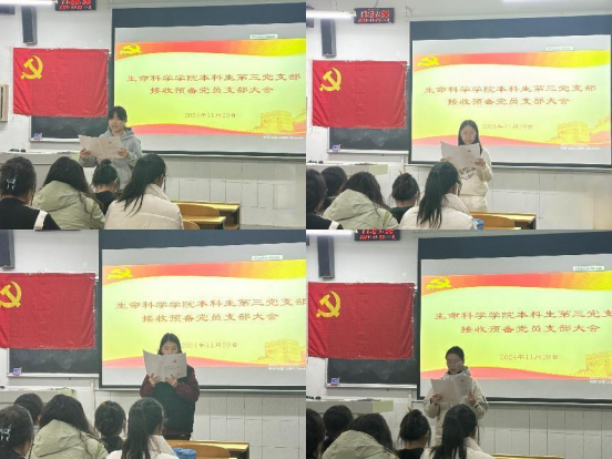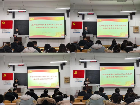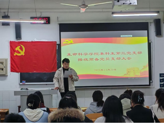 本科生第一、二、三党支部于生物楼召开接收预备党员支部大会。