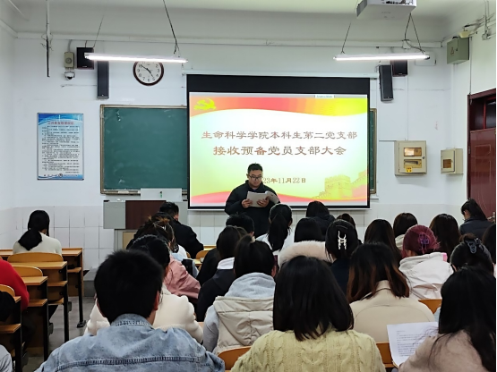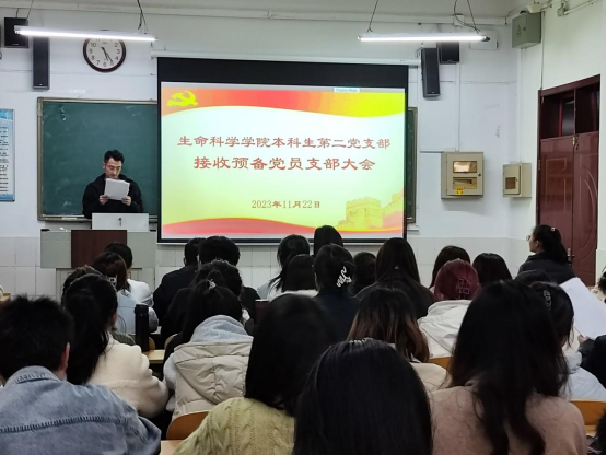 本科生第二党支部于生物楼229室召开接收预备党员支部大会。本次会议由第二党支部书记赵连栋主持。