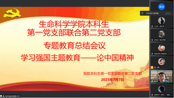 本科生第一党支部联合第二党支部开展“主题教育—论中国精神”专题培训。