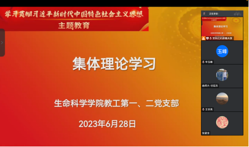 6月28日下午,学院教工第一、第二党支部全体党员通过腾讯会议开展专题理论学习活动。本次活动由教工第一党支部书记辛玉峰同志主持,教工第二党支部委员贺秋红领学。
