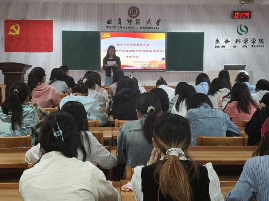 专题研讨环节,张雨喆、郝子旭、于应笑三位党员代表围绕“科技自立自强”“青年使命担当”等关键词分享学习感悟。张雨喆结合生物学科前沿,提出“在基础研究中厚植创新土壤”的思考;郝子旭从学生工作实践出发,呼吁以“钉钉子精神”破除浮躁心态,夯实科研基本功;于应笑则结合习近平总书记对青年“五个模范”的嘱托,强调要以“功成必定有我”的主动担当,在科技报国中书写青春答卷。现场讨论气氛热烈,党员们一致认为,必须始终保持“十年磨一剑” 的定力,在攀登科技高峰中展现青年一代的闯劲与韧性。