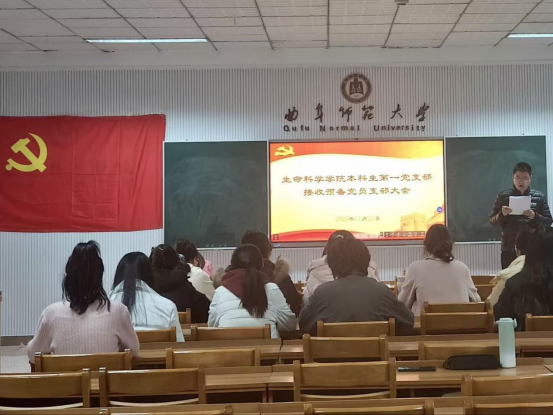 本科生第一党支部于生物楼232室召开接收预备党员支部党员大会,第一党支部全体党员参会。