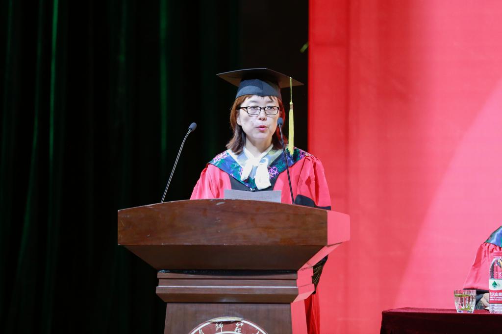 院长助理燕艳副教授宣读2021届优秀毕业生名单,全院共有2名研究生、25名本科生被评为省级优秀毕业生;8名研究生、115名本科生被评为校级优秀毕业生。
