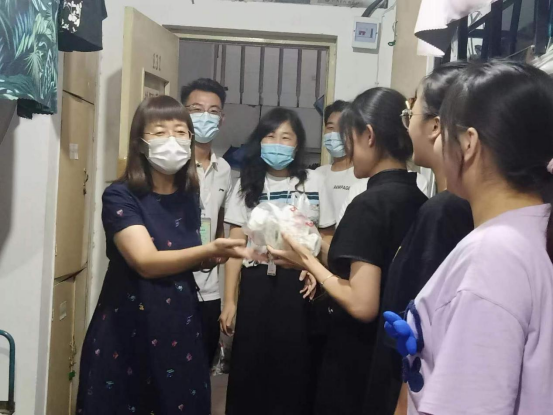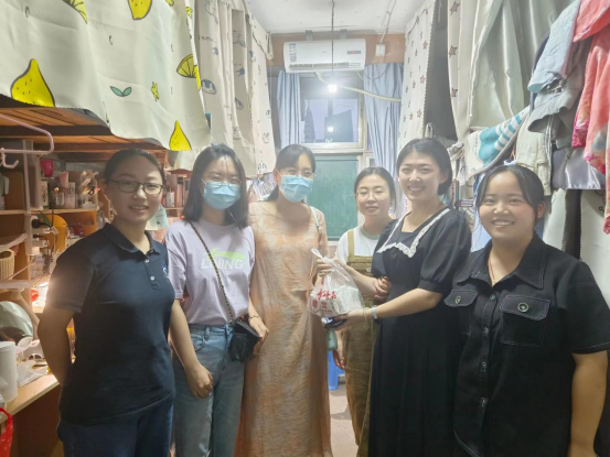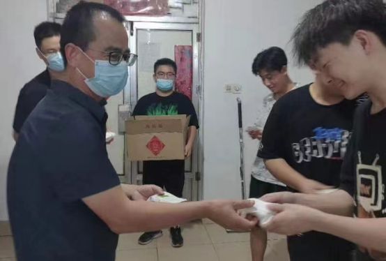9月10日、11日学院老师走进学生宿舍,为同学们分发中秋月饼,给同学们送去了温暖的关怀与节日的祝福。老师和同学们亲切地聊起家常,亲情般的关怀和温馨沁入每位同学的心中,宿舍里洋溢着浓浓的师生情谊。