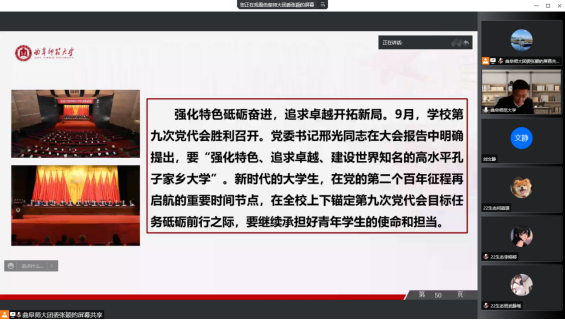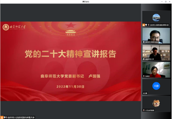 与会师生们表示,将按照学校要求,进一步学习领会报告的重大意义、丰富内涵,深刻领悟“两个确立”的决定性意义,增强“四个意识”、坚定“四个自信”、做到“两个维护”,切实把思想和行动统一到党的二十大精神上来,踔厉奋发,勇毅前行,团结奋斗,为党和国家事业发展、为建设世界知名的高水平孔子家乡大学做出应有的贡献。