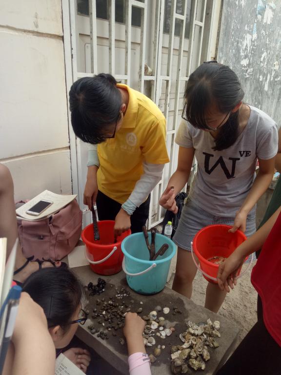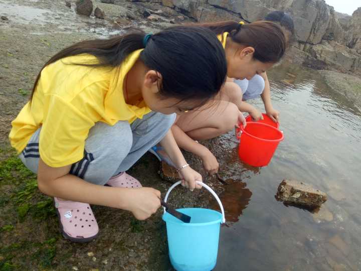 在这一个周的标本采集中,每位同学跟随老师下海,在烈日下在退潮后光裸的沙滩上踩着岩石,一步一个脚印的搜寻着自己不认识的物种,再将它们带回并询问老师。海边这些看似相同的贝壳竟有如此多不同的种类,壳子上的凹陷和纵勒都显示着它们物种的独特性,十分奇妙。除此之外,中国科学院海洋研究所、动物园、水族馆亦留下了大家求知的身影。