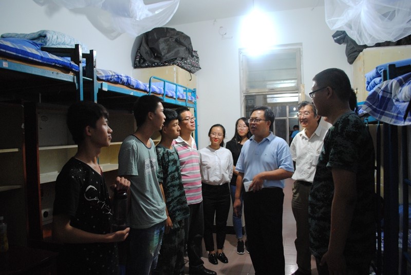 学院领导从迎新工作场地到新生宿舍,再到军训现场,现场检查和指导工作,关心关爱新生的住宿、生活,看望学生,悉心照料晕倒的学生。