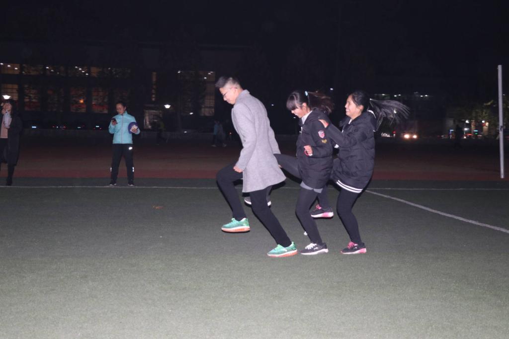 在比赛开始前,在裁判讲解比赛规则以及注意事项之后,参赛人员先戴上荧光手环,然后针对比赛策略包括人员排列,脚步速度,抬脚高度,口号节奏等方面进行了热烈的讨论和积极的试验。在经过赛前的策略讨论,同学们采用最适合自己小队的方案,迅速高效的完成了各项比赛,表现出了队员之间脑力和体力的完美配合,让同学们感受到合作的重要性。