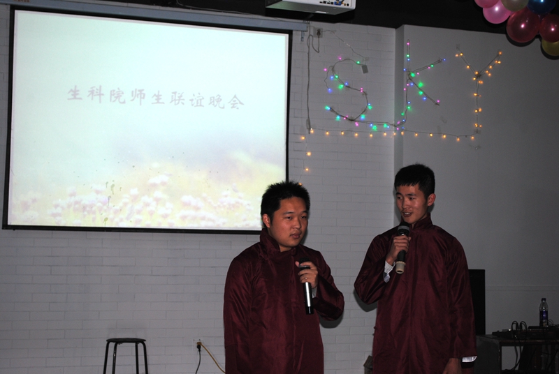 一系列的包饺子比拼过后,晚会正式开始。由文艺部带来的开场舞《失恋阵线联盟》点燃了全场观众的激情;女生部带来的动听音乐《带你去西海旅行》扣动着师生们的心扉;一出《他比我更合适》的音乐剧让我们感受到了音乐与小品的完美融合;小品《TF girls》更是让师生爆笑连连。随之而来的是舞蹈《lue me》、《歌曲串烧》、小品《大话女儿国》和歌舞《咖喱咖喱》。让人回想自己高中的舞台剧《十年》,热辣劲爆的《舞蹈串烧》,诙谐幽默的朗诵《摩擦的胖子》无不博得同学们的阵阵喝彩。小品《社会实践那点事儿》则充分体现了当代大学生的诚实的优良品质。相声《你的名字》逗的同学们捧腹大笑。情景剧《一堂课》栩栩如生,真实的再现大学课堂。张誉琳小朋友的《我的楼兰》带我们穿越时空,回到那千年之前,揭开被黄沙所掩盖的秘密。徐书记的《我和我的祖国》、孔凡华老师的《爱琴海》、赵书记的《外婆的澎湖湾》、孔东升老师的《驿动的心》、姜曰水老师的《精忠报国》,以及徐书记夫妇的合唱《为了谁》,一首首经典的歌曲都表达了老师们对51动漫