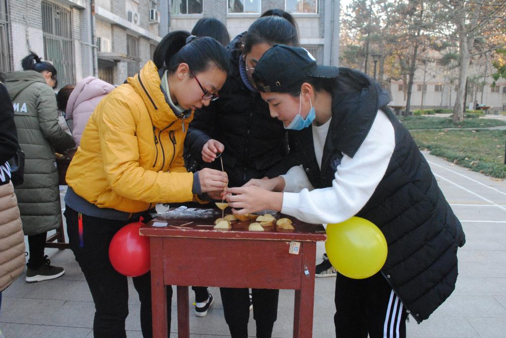 比赛分为三个环节,各个环节都十分精彩。第一环节是土豆叠叠战,由每班派出三人的队伍利用以切好的土豆块和牙签进行高度挑战,以高度来评分。第二环节是 “两人三足”,三支队伍为一组,每支队伍3人抽签决定组数,根据在相同距离所用时间长短来打分。第三环节为一分钟夹气球,在规定时间内夹气球数量最多者获胜,途中气球掉地则为重新开始。三个环节主要考验团队合作精神,合作越好得分越高,同学们认真进行每个项目,开心地和队友接受挑战。