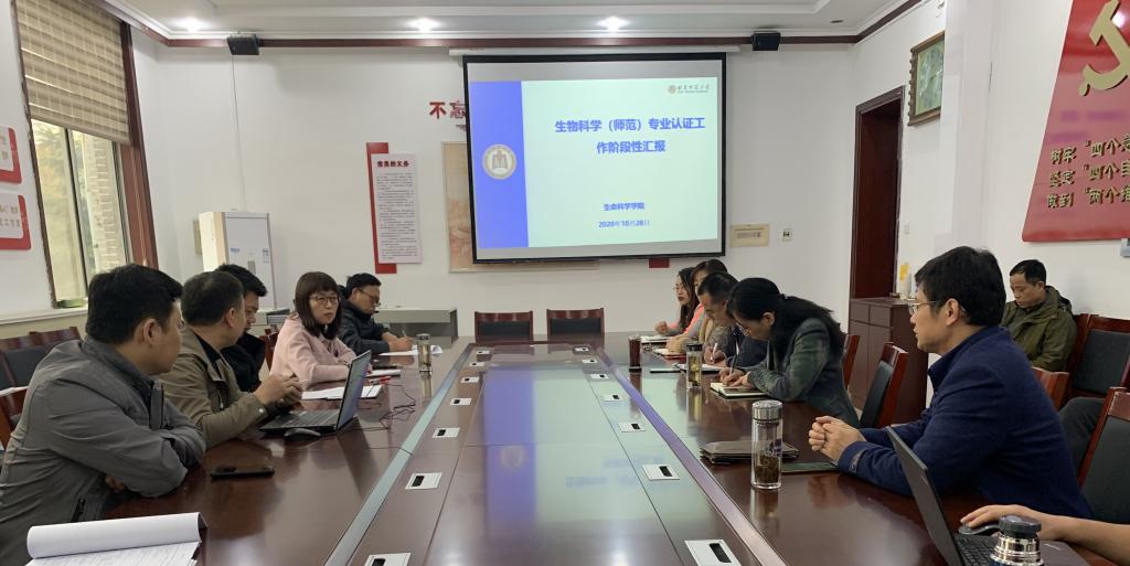 在208会议室召开生物科学(师范)专业认证工作阶段性汇报会议。会议由学院副院长王仁君主持,认证工作组10个组长以及佐证材料组全体成员参加会议。