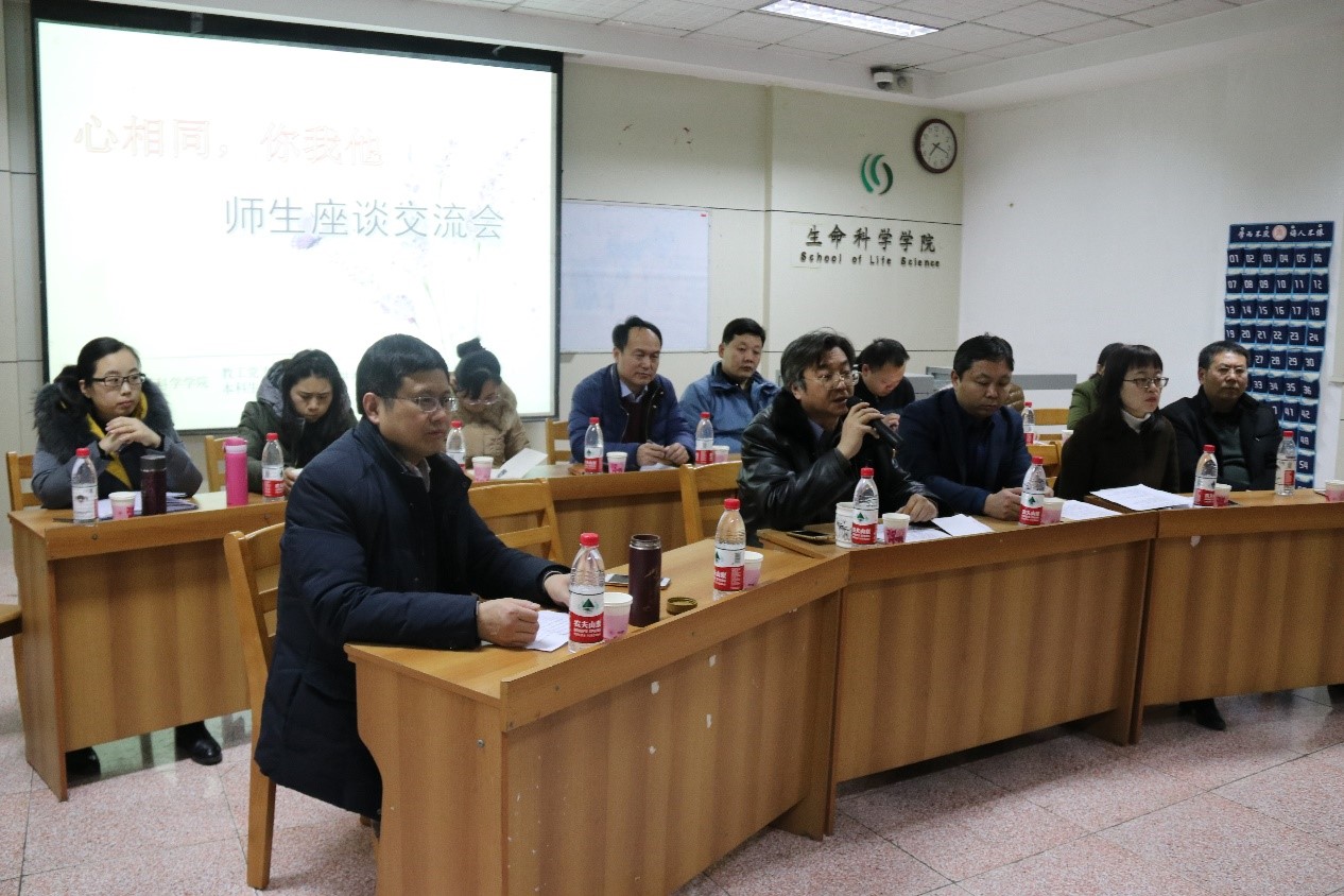 教工党支部和本科生党支部联合举办的“心相同,你我他”师生座谈交流会在生物楼二楼多媒体教室举行。
