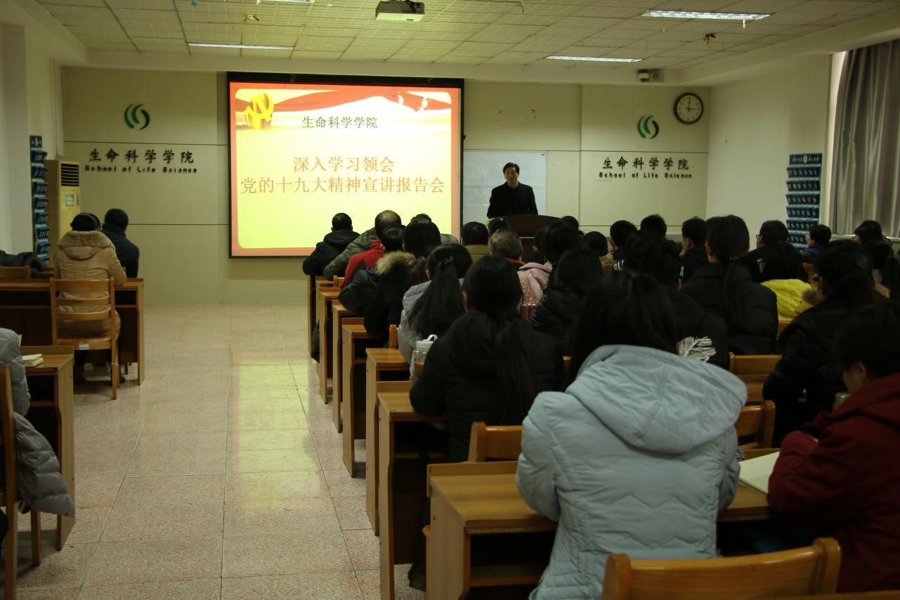10月18日,中国共产党第十九次全国代表大会在人民大会堂隆重开幕。生科院党委立即组织党员师生全程收看十九大实况转播,徐来祥书记、杨月伟院长等党员干部认真观看,深刻领会习近平总书记报告的主要精神,交流心得体会,大家一致认为,习近平总书记所作的报告是一篇面向新时代的中国共产党的政治宣言,是举旗定向、引领复兴、兴党强国、具有强烈使命感的好报告。认为党员干部需积极开展各种形式的学习,进一步领会党的十九大精神,切实把思想和行动统一到十九大精神上来,把智慧和力量凝聚到实现十九大确定的目标任务上来;新时代下,紧密结合自身实际充分运用党的建设宝贵经验,继续以改革创新精神全面加强和改进党的建设,努力促进学院更好更快发展。