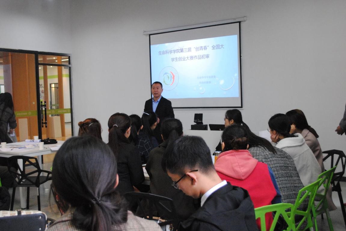 团委书记刘洪铎老师、党委副书记赵强老师、创业孵化基地指导老师孔老师,创青春优秀指导老师邱念伟教授和20组优秀团队参加了这次初选会。