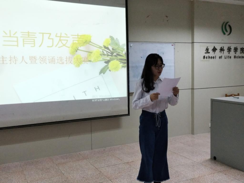 团委学生会于3月18日在生物楼二楼多媒体教室举办“当青乃发声”主持人暨领诵选拔比赛。本次活动邀请到学生会事务统筹中心主任马得耀、文艺部部长商红娜、宣传部部长赵熙宇、学习部部长耿昕以及优秀领诵李晨、吴云潇。