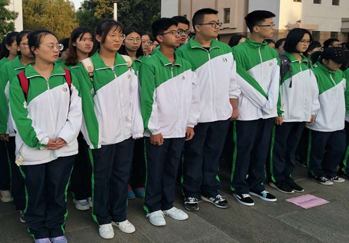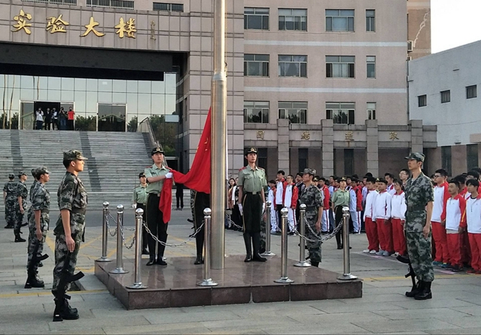 的同学们对此次升旗活动十分热情,早已提前整齐地到达孔子文化广场有序等待活动的开始。升旗仪式于早上6时30分正式举行,全校学生都自觉肃立。在大家的注目中,国旗护卫队成员昂首挺胸,迈着整齐的步伐护送国旗入场。随着庄严的国歌奏响,五星红旗冉冉升起,迎风飘扬,鲜红色闪耀在每一个人心里。“青春气贯长虹,勇锐盖过怯弱,进取压倒苟安”,同学们要铭记历史,传承五四精神,做一名有远大理想的青年。随后,全校同学们重温入团誓词,铿锵有力的誓词使同学们更加认识到自己肩上的重任,立志用知识、理想和满腔热血,谱写更加响亮的青春之歌。