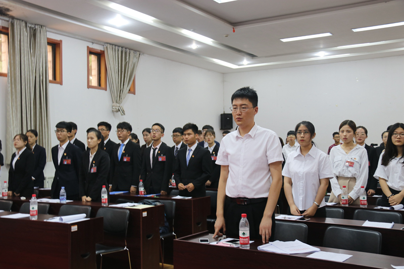 2017届团委、学生会主席团担任此次大会执行主席。大会在庄严的国歌中正式拉开帷幕。
