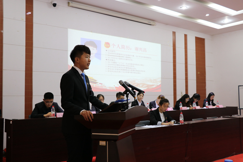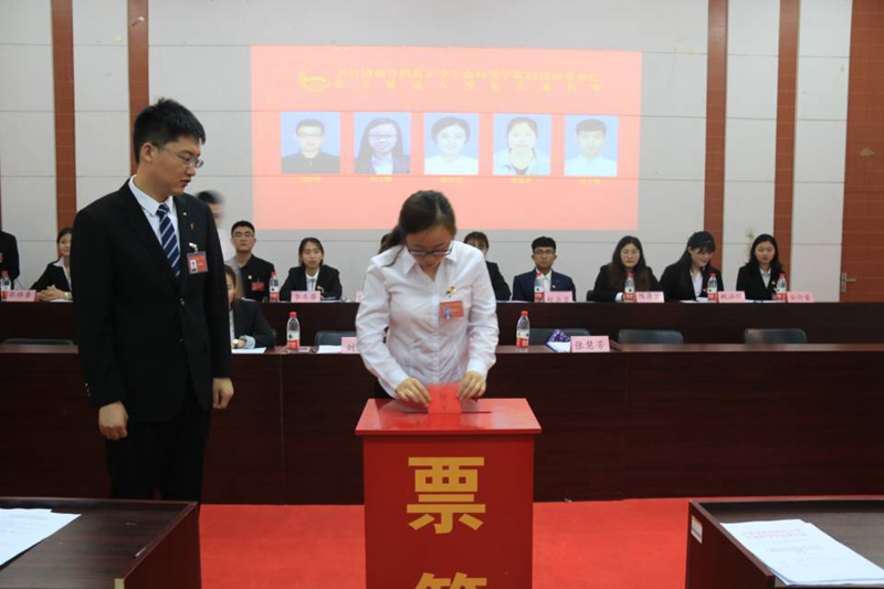 2017届学生会主席靳乐乐主持学代会全体会议,选举2018届学生会主席团成员。