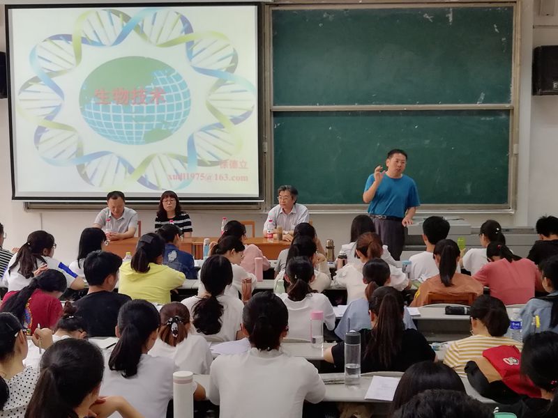 党委副书记赵强主持了本次会议,此次会议目的是为2017级生科大类的同学进行指导与帮助,让同学们充分了解两个专业,真正的明白自己想要去哪个专业,不要盲目的选择,为自己的未来选择一条适合自己的道路。之后,邱念伟教授介绍了生物科学专业的特点、培养要求、专业核心课程、专业拓展课程以及毕业去向,邱念伟教授强调生物科学专业不仅要求学生学好专业知识,还要培养其现代教育思想和教育教学技能。徐德立教授介绍了生物技术专业的学习内容、未来的去向、培养目标以及应用。两位老师都分享了自己的经验,积极帮助同学们树立远大目标,立足现状,鼓励同学们积极进取,语重心长的告诉学生们,不管在哪个专业、哪个平台,努力是第一位的,不断进步并取得成绩,就能到达你理想的彼岸。