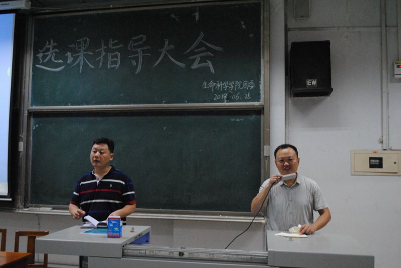 教工支部、学生支部、团委学生会于6月25日晚在综合楼101教室举行了选课指导大会,参与此次活动有邱念伟老师,李玉建老师和窦海龙老师以及2017级生物科学类的全体同学。