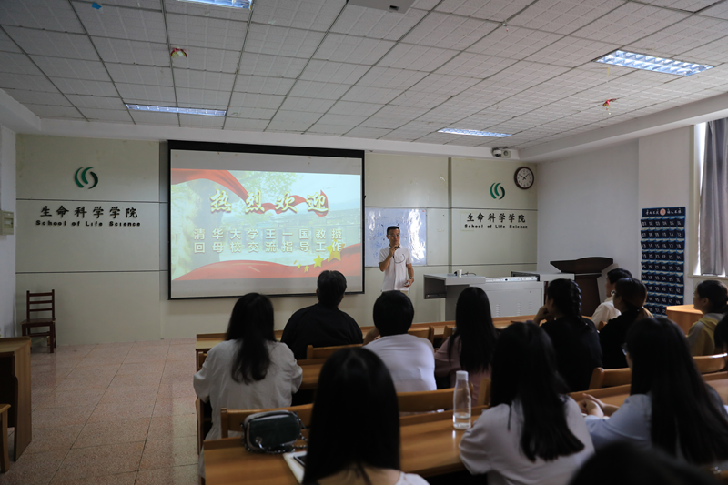 这些年的发展,同时也对我们今后的发展寄予很大期望。随后,在生物楼二楼多媒体教室举办了王一国教授师生见面会。院党委书记徐来祥教授、副书记赵强老师及生科院部分师生参加了本次见面会。王一国教授从自身经历出发,分享了他在求学时的体会,认真解答了同学们在学业上存在的问题。王教授还就大学生应该就业还是考研的问题谈了他的看法。最后介绍了他自己的研究方向和研究目标,也介绍了清华大学和施一公实验室有关情况,师生见面会在掌声中圆满结束。