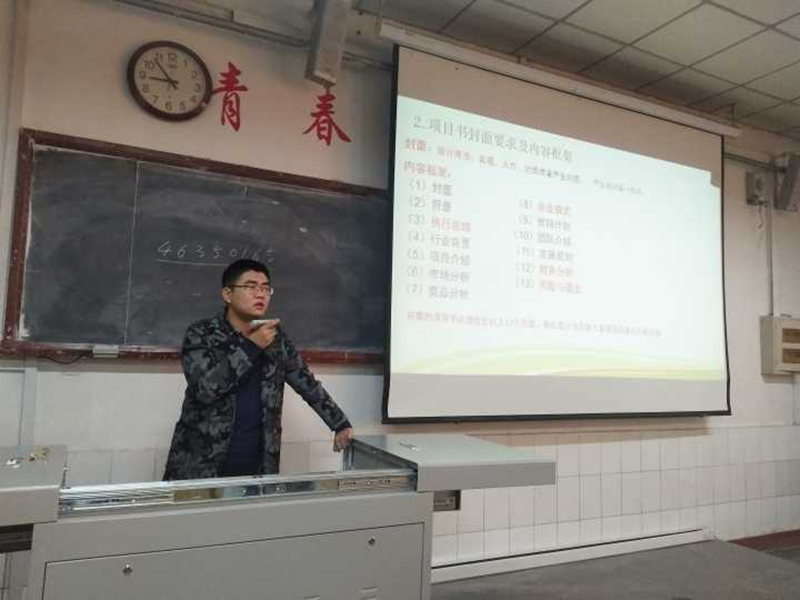 此次创新创业经验交流会,由四位有经验的同学来分享他们的创业经历和参赛经验。首先,由主持人介绍活动的大致流程。随后,科技创新部部长张广忠结合他的经历非常细致的讲解各种比赛的相关信息,用他自己的经验和知识来引领同学们。紧接着,优秀学生干部马得耀讲解了如何撰写了策划书、撰写策划书时应注意的问题,提高了同学们撰写策划书的能力。最后,由崔萍和宋晓旭分享了自己的参赛经验,教给了同学们一些实用的技巧,让同学们能够为参赛做足充分的准备。