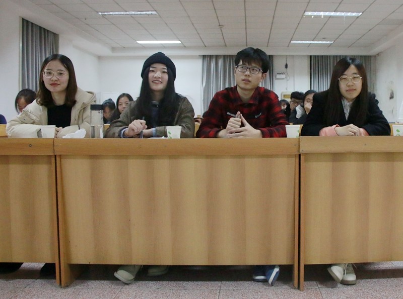 团委学生会社会实践部部长郑玉皎、生活与权益部部长陈素阳、文艺部部长彭高飞、勤工助学部部长杨昕宇。