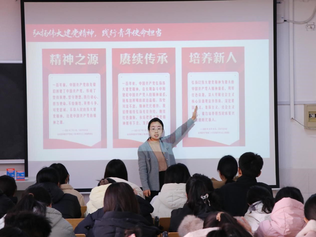 她强调,伟大建党精神蕴含着中国共产党人从哪里来、到哪里去的精神密码。纵观每个时代的发展,青年始终都走在时代的最前沿,是伟大建党精神的创造者、践行者,也是伟大建党精神最坚定的传承者。新时代青年当以伟大建党精神为指引,自觉担负起时代赋予我们的时代重任,将个人所学所专所能,与国家、人民的需求紧密结合在一起,到祖国最需要我们的地方建功立业,为推进中国式现代化贡献智慧和力量。