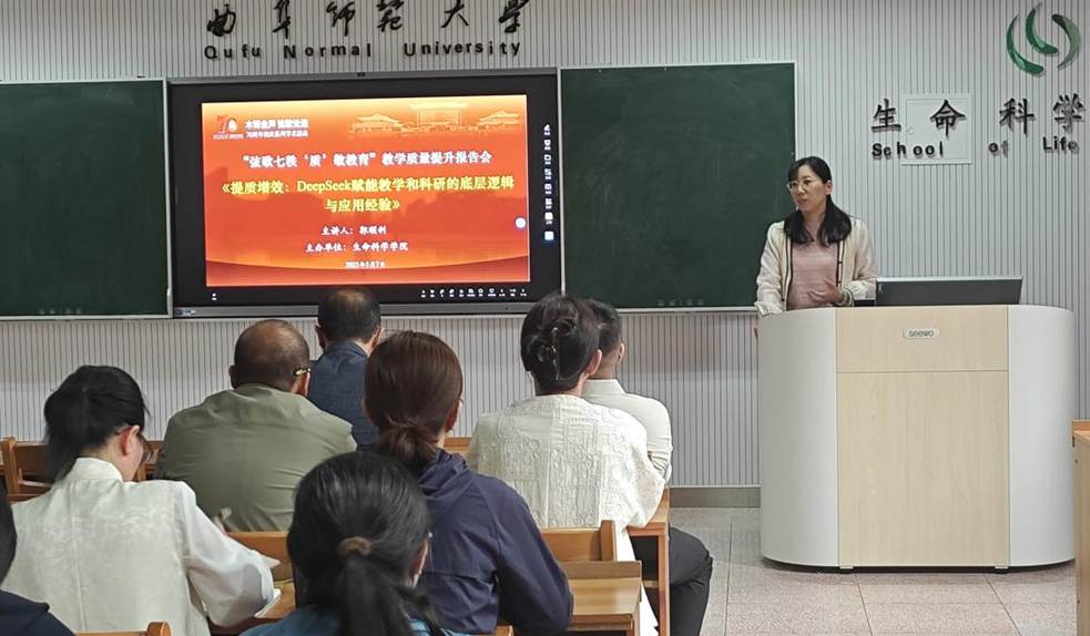 为进一步提升人才培养质量,推动人工智能与高等教育教学融合创新发展,5月9日下午,学院 “弦歌七秩·‘质’敬教育”教学质量提升系列报告第二场专题报告会在生物楼232举行。特邀我校传媒学院郭顺利副教授作题为《提质增效:DeepSeek赋能教学和科研的底层逻辑与应用经验》的专题报告。报告会由副院长燕艳主持,院长王仁君、副院长王庆贵、院长助理赵超及学院全体教职工和部分研究生参加了报告会。