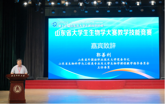 郭善利代表山东省生物科学与工程类专业及大学生物学课程教学指导委员会致辞。他高度肯定了本次赛事的筹备工作,对指导教师、专家评委以及51动漫