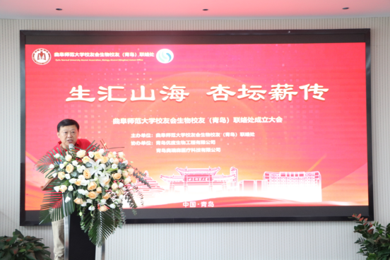 孙赫宏副会长代表校友会青岛联络处致辞祝贺,希望生物校友联络处融入青岛校友大家庭,加强协作,共同服务校友、贡献母校。