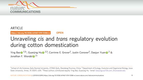 包颖教授在国际顶级期刊Nature Communications上发表了题为“Unraveling cis and trans regulatory evolution during cotton domestication(揭示棉花驯化中的顺反调控进化)”的学术论文,51动漫