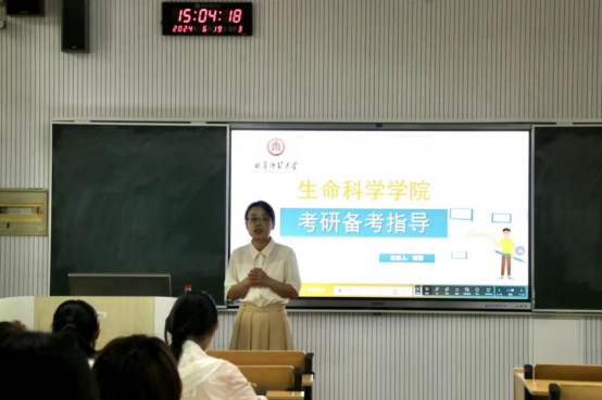 为解答考研困惑,科学规划考研,6月19日下午,生命科学学院2022级本科生考研规划指导讲座在生物楼101教室顺利举行,此次活动由新东方考研指导老师郭涛主讲,2022级辅导员刘文静参加活动。