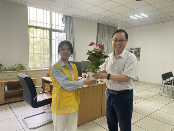 “老师,教师节快乐!这盆绿植送给您,希望它能为您的工作环境增添一抹生机。”老师们接过绿植,脸上绽放出幸福的笑容,那笑容里有被理解的欣慰,有被关怀的感动。