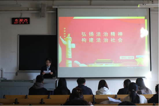在主持人坚定而有力的声音中,比赛正式开始。紧张而充满期待的气氛在教室中弥漫开来,参赛选手们带着自信和激情,按照抽签顺序逐一登台。他们的声音各具特色:有的洪亮而充满感染力,有的柔和而富有吸引力,有的抑扬顿挫、节奏感强烈。选手们的演讲稿同样精彩纷呈,内容深刻,结构严谨,以不同的视角和方式,层层深入地展现了宪法的重要性。在演讲过程中,选手们巧妙地运用PPT和背景音乐来增强表达效果,将情感和信息完美融合,深深地打动了在场的每一个人。选手们的精彩演讲清晰地讲述了对宪法的理解,引起了评委和观众的强烈共鸣,赢得了阵阵掌声。