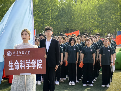 春季体育运动会开幕式在南操场举行,各学院师生参加开幕式。